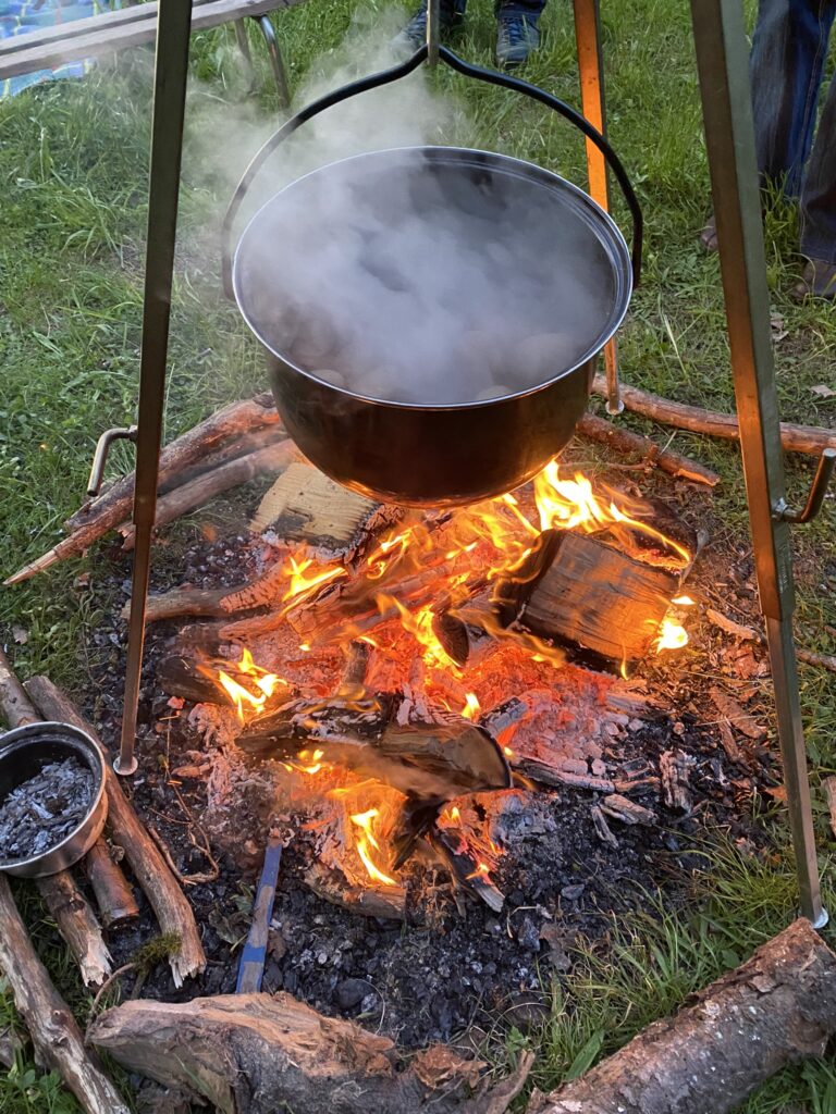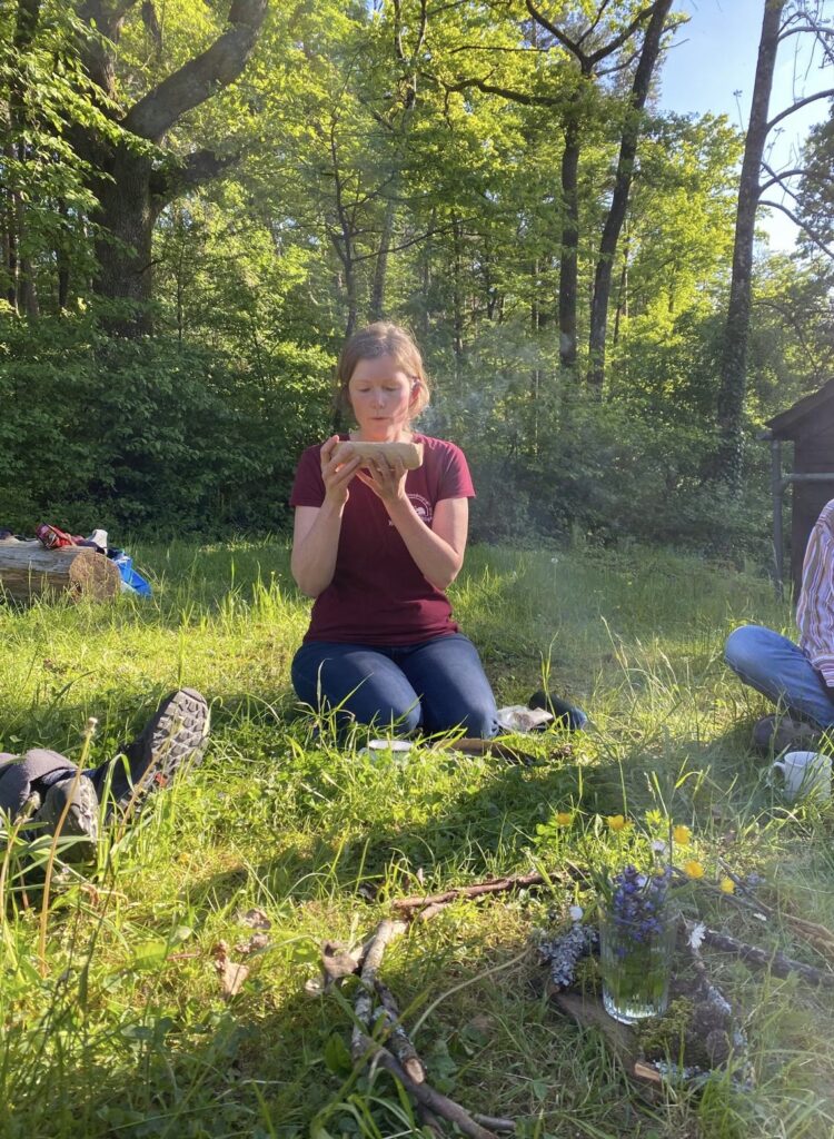 Am Ende eines Tages treffen wir uns unter freiem Himmel und lassen den Tag gemeinsam ausklingen. Wir kochen ein einfaches Gericht über dem Feuer, sprechen aus dem Herzen und hören einander zu, singen, räuchern und genießen das Draußensein in der Natur.
